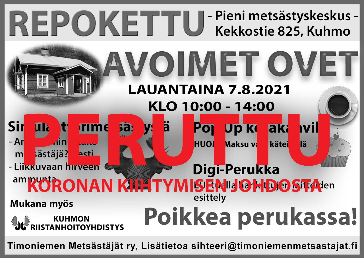 Järjestää Timoniemen Metsästäjät ry, lisätietoa sihteeri@timoniemenmetsastajat.fi